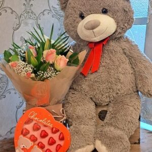 Extra Large Teddy, Lily & Rose Bouquet & Chocolates