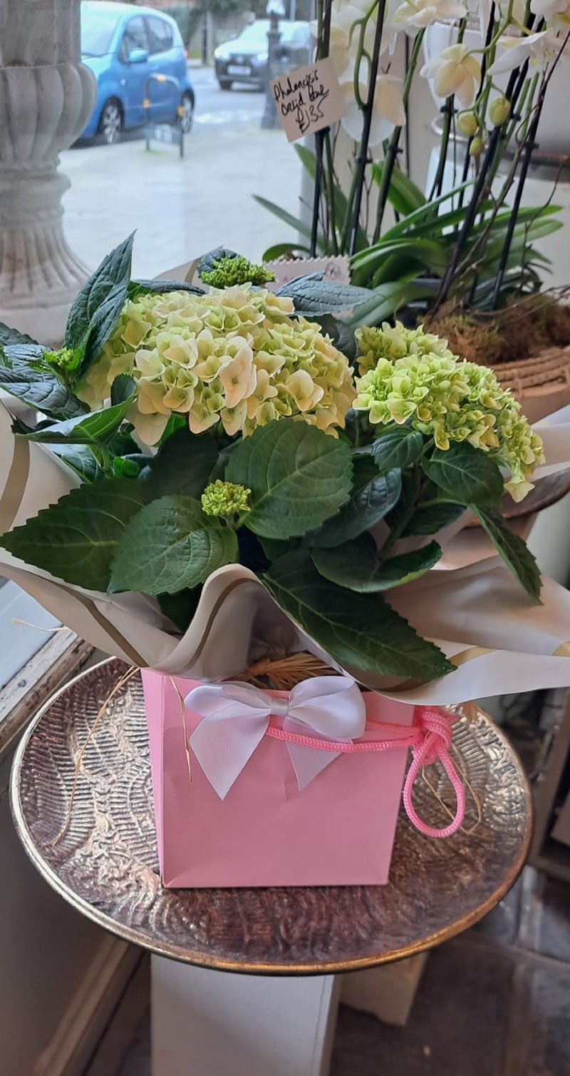 Hydrangea plant in a bag